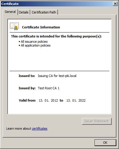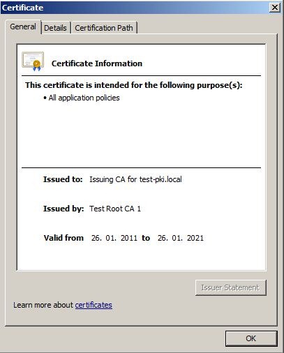 It was possible on a Windows 2003 CA to issue the same Test Certificate ‘TestUserCert-WithIssuance’ with this same CA certificate without issue.