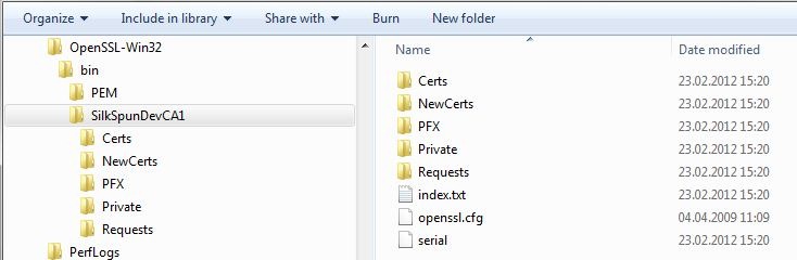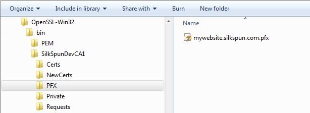 - Download the file openssl.cfg here and place it in the Bin/SilkSpunDevCA1 directory (or whatever you decided to call your CA).