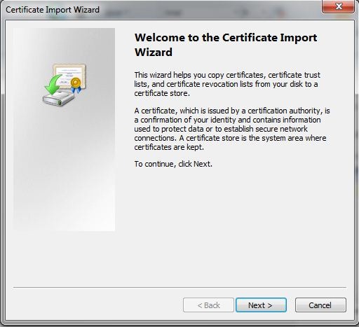 - To import this to the Windows Certificate Store, double-click the file and follow the import Wizard