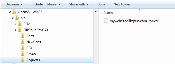 SilkSpunDevCA1\requests\mywebsite.silkspun.com-req.csr: No such file or director